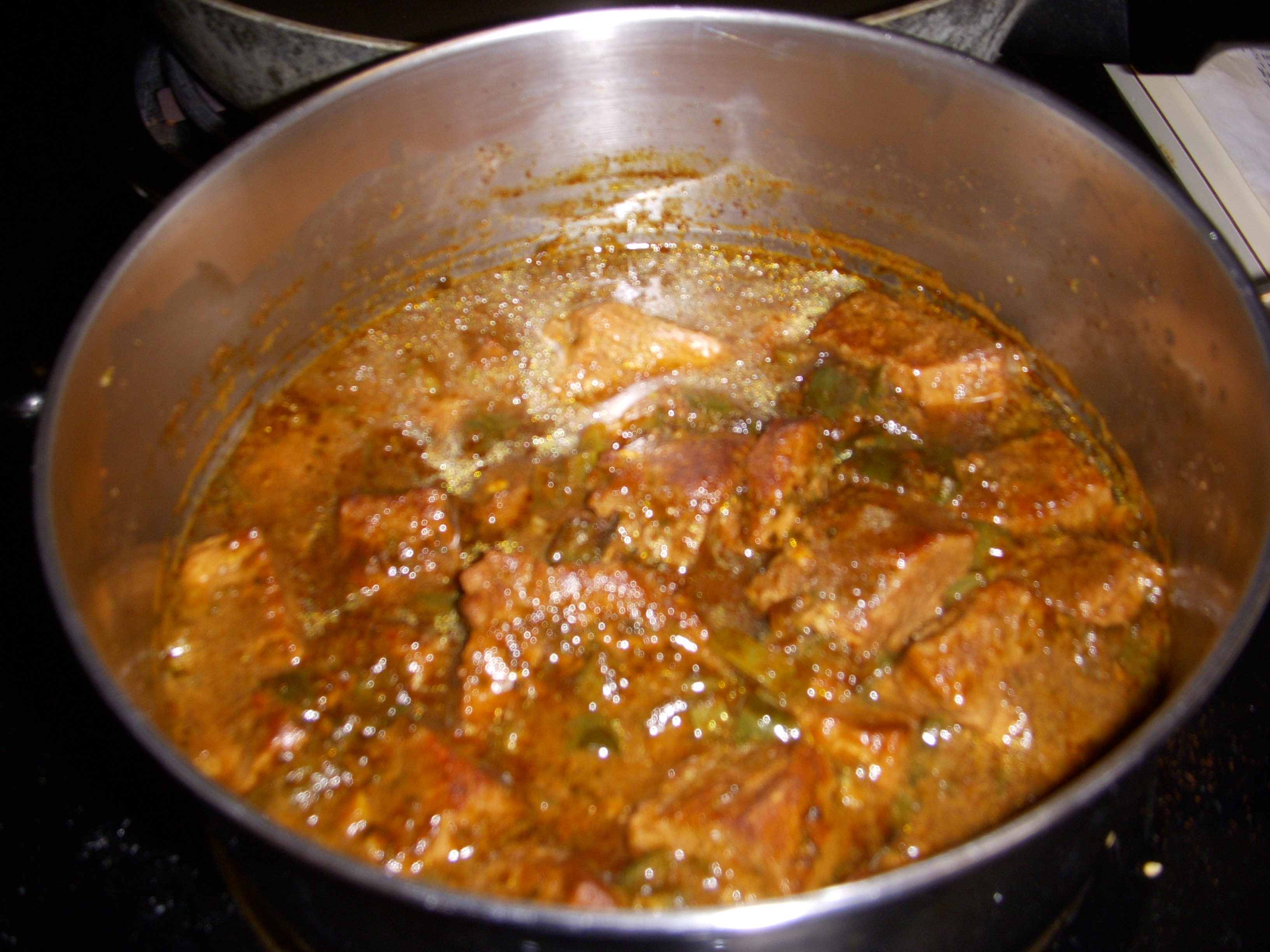 Combine all ingredients in a medium saucepan and bring to a simmer. Continue to simmer meat for two hours or until tender. Remove meat with a slotted spoon but reserve broth.