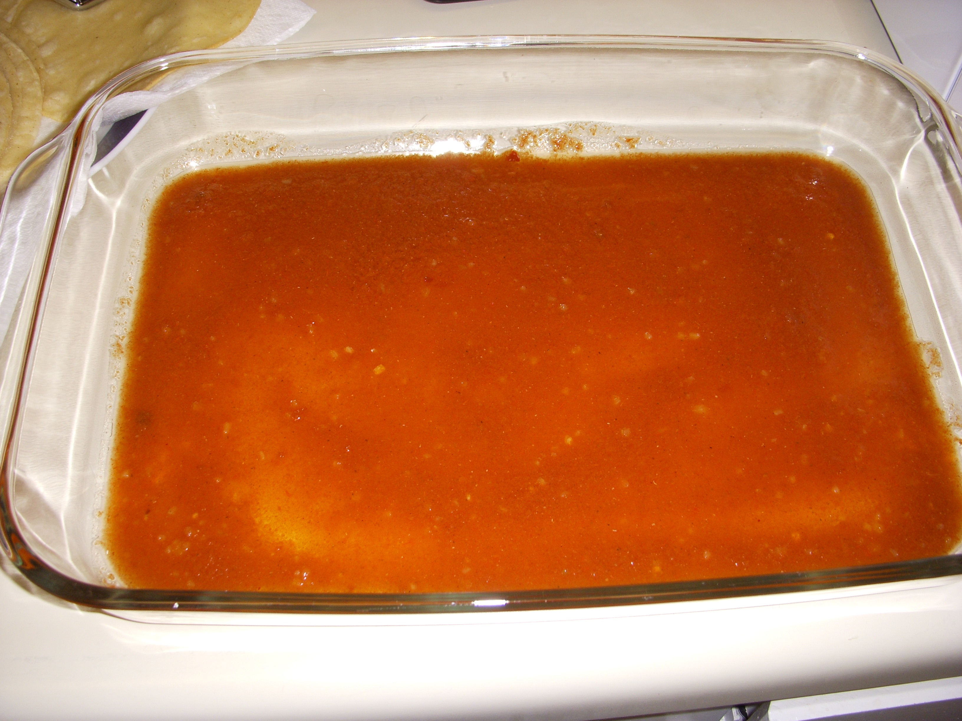 As for sauce, we have used several varieties over the years and canned sauce works as well as anything else. Currently, I try to use the Lawry’s enchilada sauce when I can get a packet. I make the sauce as described on the package but I like to add a little of the beef broth to thin it and for flavor. Make sure to reserve some sauce to make Spanish rice!