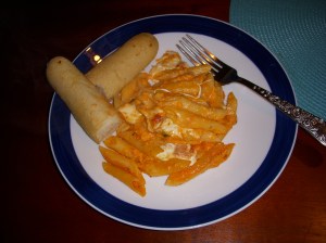 I was looking for some new recipes to try out so I headed over to search through Rachel Ray’s recent recipes. I’m not really sure why this particular recipe called out to me, but it did and it was excellent. My friend Dorothy loves Penne alla Vodka so maybe I was thinking of her.