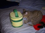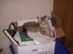 Josh requested some pictures of Pepper when she was a kitten. Josh and I got Pepper at a petting zoo at the Memorial Day Festival in Boalsburg, PA. She cost $5 and was unknown weeks old (we think she was 4 or 6 weeks old but never really knew for sure.) She was named Pepper Potts after Iron Man’s girlfriend. The first movie had just come out which means that we must have gotten her in 2008. Josh is a comic book freak and he wanted to name her after a comic book character so he kept trying obvious X-men names which I recognized and rejected. (Thinking about it now, Rogue would have been a pretty good cat name.) Pepper was a compromise because unless you knew the background story you might think she was named after the spice due to her grey, brown and black stripes.