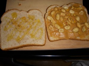 One thing I have been making lately are Peanut Butter and Honey sandwiches. Peanut butter and honey sandwiches are pretty much the only kind of peanut butter sandwich I eat. Well, except for peanut butter and raspberry preserve open-faced sandwiches on toast. Honey doesn’t work well on an open-faced sandwich because it starts dripping everywhere.