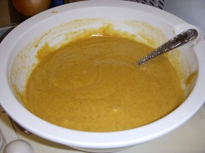 This recipe makes a lot so make sure you use a big bowl to mix the batter. Part of the reason it makes so much is that it uses a whole can of pumpkin. Which is nice because who wants half a can of pumpkin kicking around the refrigerator?