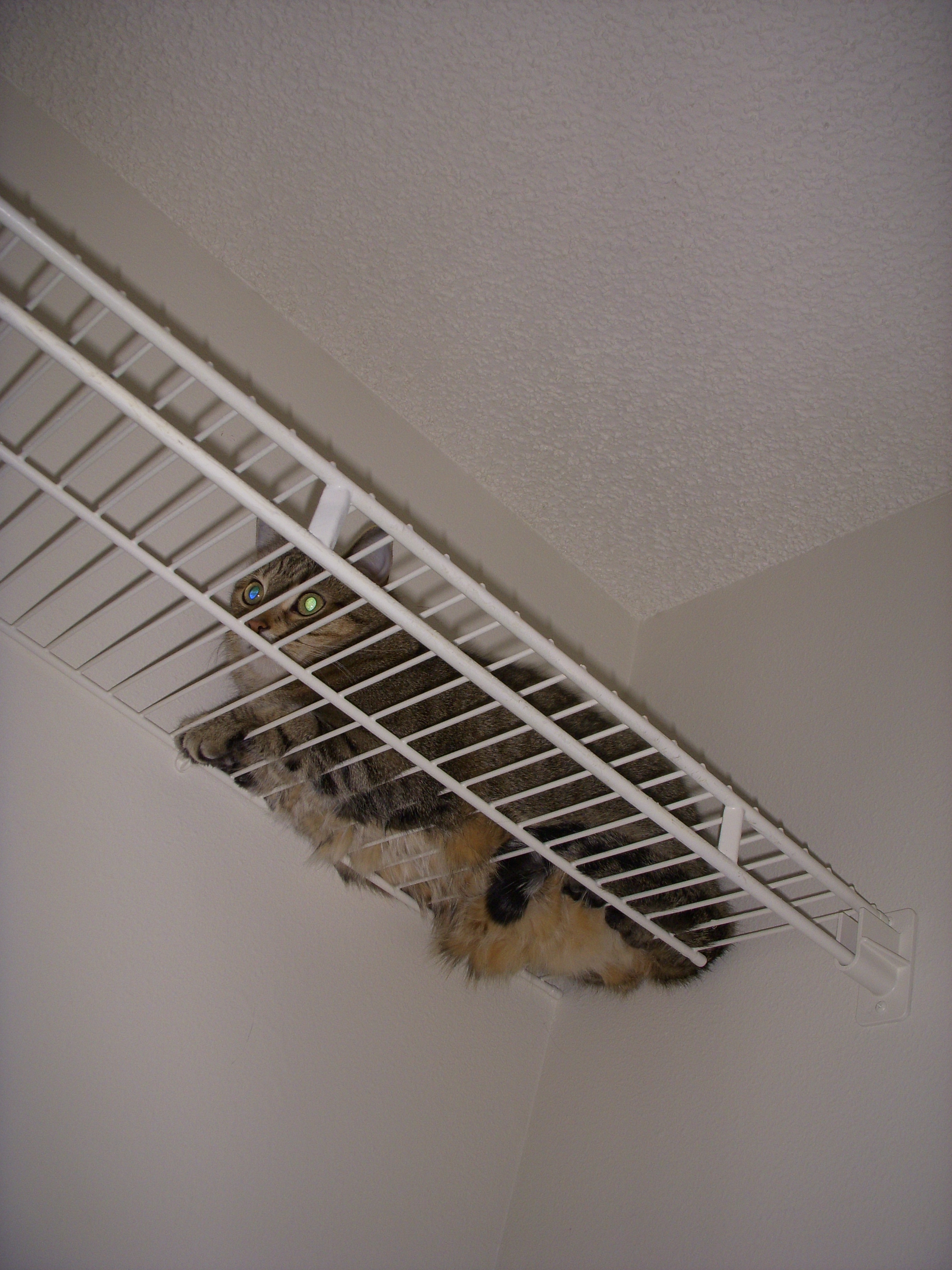 Here is a picture of the closet to give you perspective on where Pepper was hiding. She’s on the upper left corner in the back.