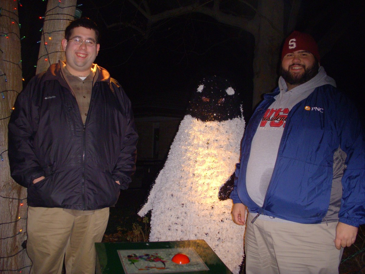 DSCN2715 Published December 6, 2012 at 3264 × 2448 in Wild Lights at the St. Louis Zoo ← Previous Next → Josh and Jordan in front of a kind of creepy talking penguin