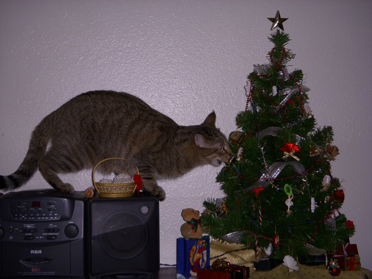 DSCN0756 Published December 23, 2012 at 3264 × 2448 in Our Christmas Tree ← Previous Pepper loves to try to eat this mini tree and all the ornaments on it!