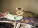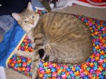 - Here she is sleeping on a quilt/pillow next to us while we watch TV