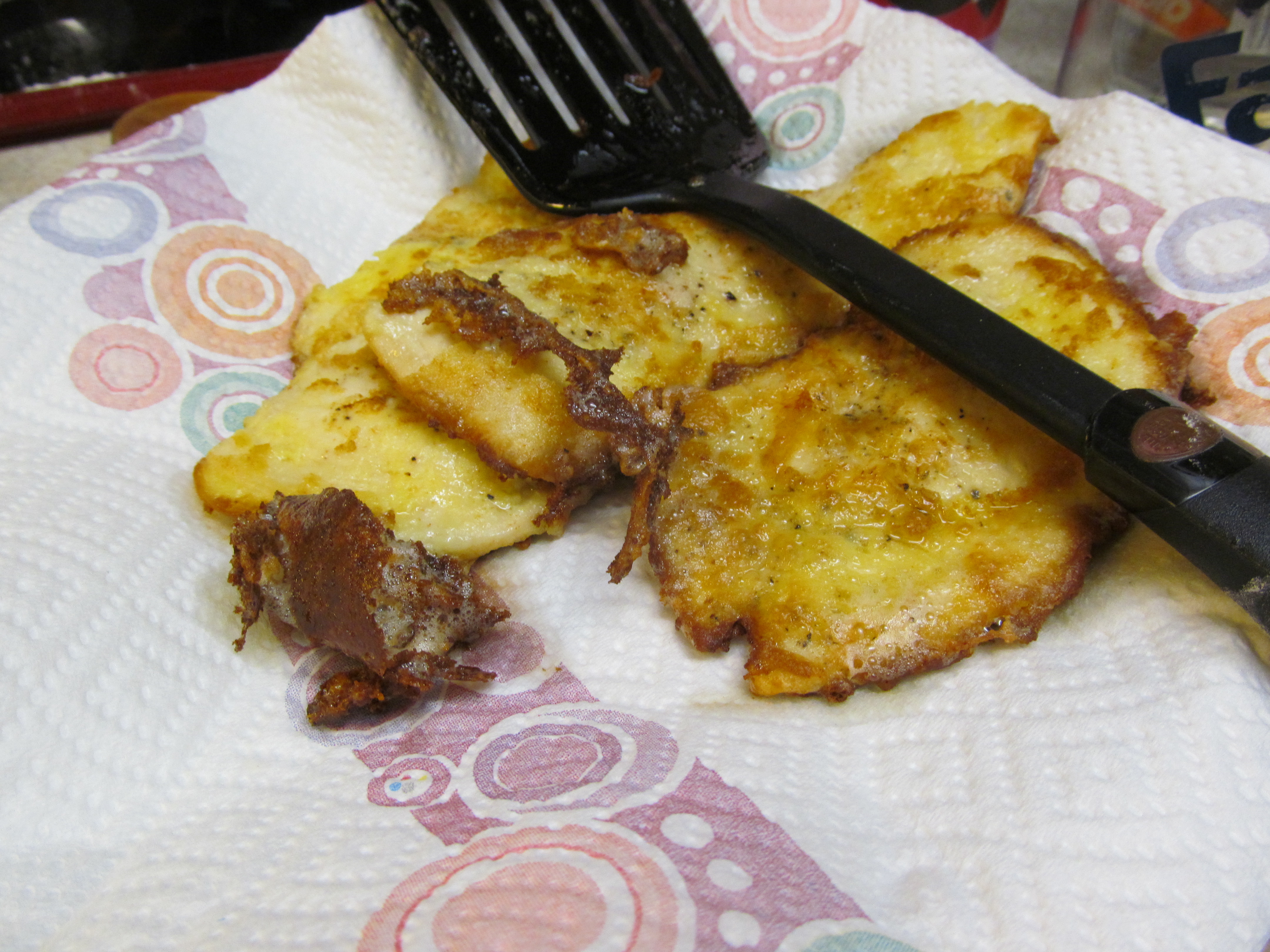 After the chicken has been cooked on both sides, place on a paper towel covered plate.