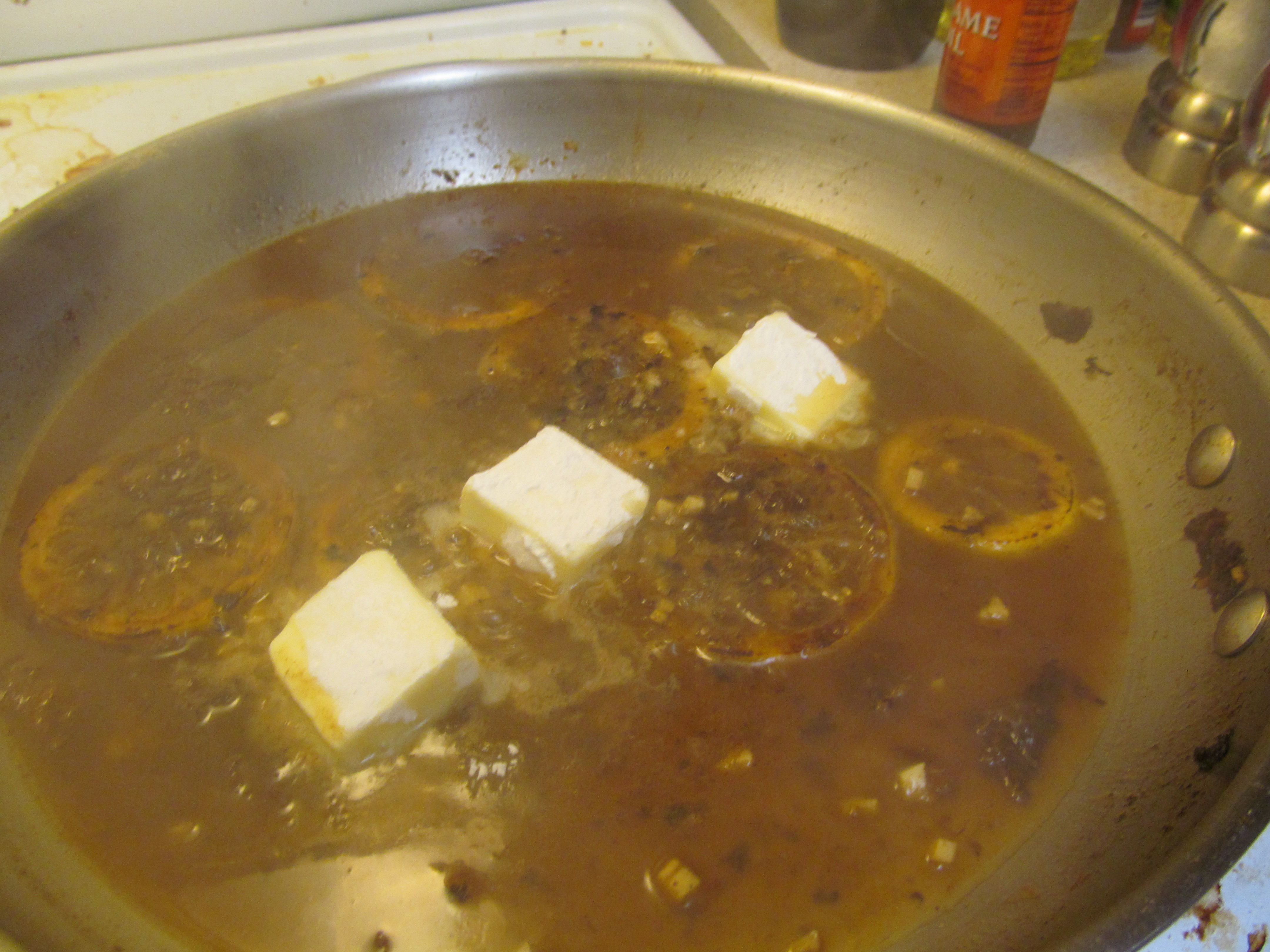 Swirl in the coated slices of butter to create a sauce.