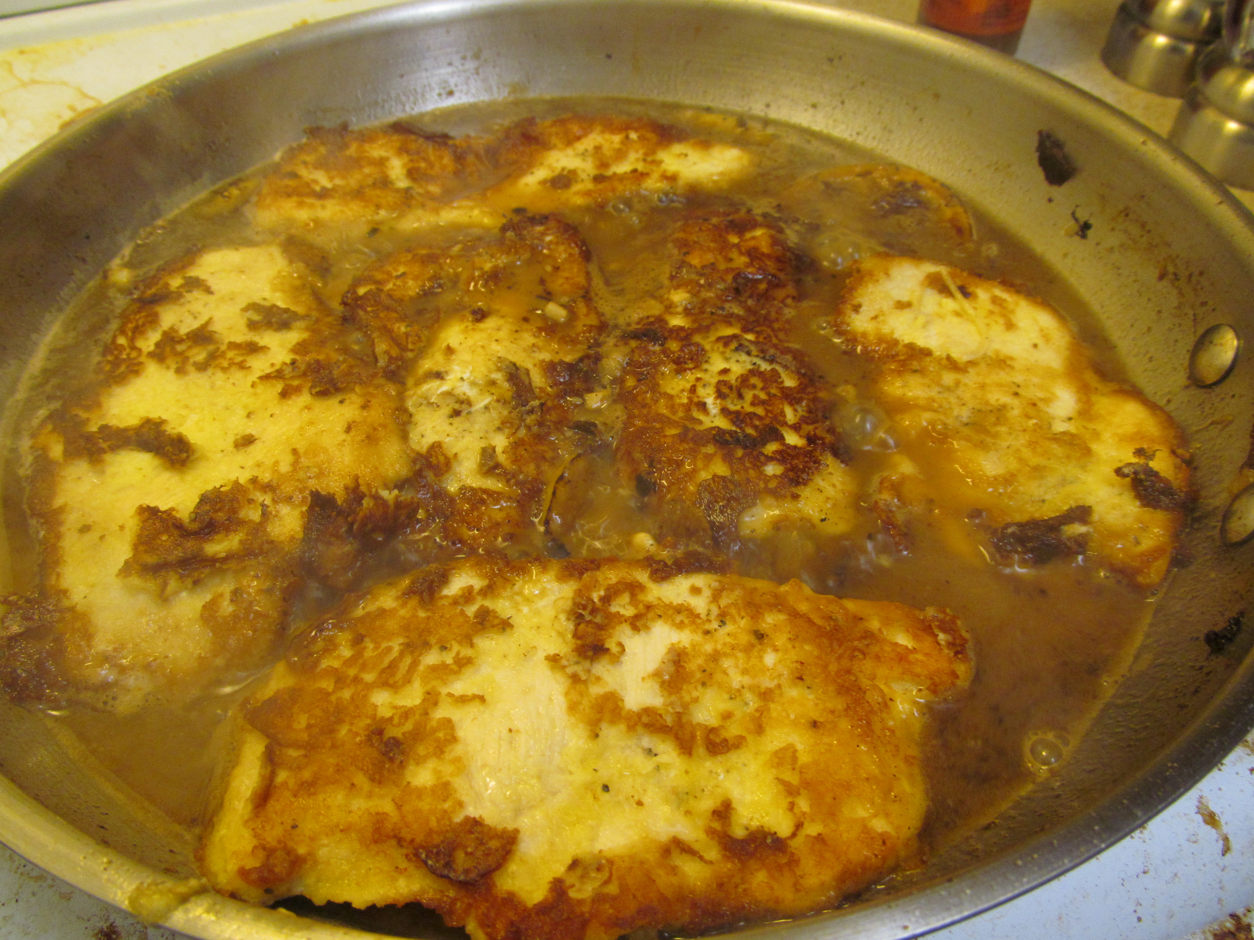 I usually cook half of the chicken at one time. After the first half are finished, I will dredge and coat the rest of the chicken and cook them as directed above.